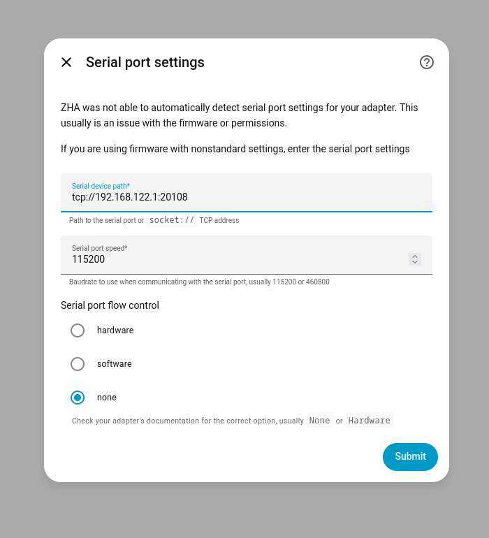 LLM (Claude Sonnet 4.6), however, pointed me to ser2net after my frustration failing to pass my Zigbee adapter through the KVM instance.